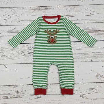 Baby Boy Deer Embroidery Christmas Romper. This quality outfit features adorable deer embroidery.