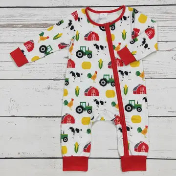 Made from soft and breathable fabric, this Baby Farm Animals Zip Romper will keep your little one comfortable for hours. With a convenient zipper and adorable animal print, this romper is perfect for busy parents on the go.