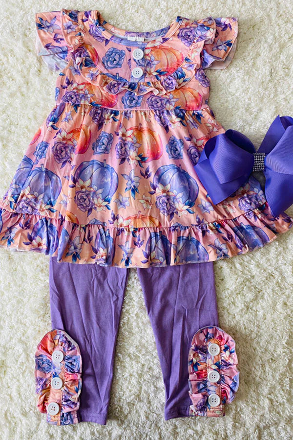 - Top features with floral & pumpkin prints with cap sleeve cut.