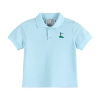 Elevate your little one's preppy style with our Light Blue Golf Hole Shirt. This collared shirt features an adorable embroidered golf hole, adding a playful touch to a classic look. Perfect for any occasion, it's a comfortable and stylish choice for your little boy's wardrobe.