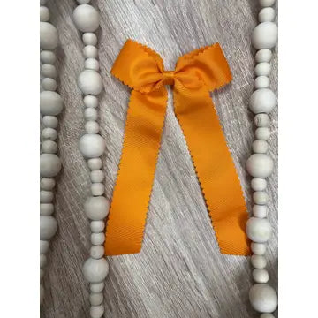 Scalloped Long Tail Hair Bow – Elegant, Versatile, and Perfect for Any Occasion Add a touch of charm and elegance to your hairstyle with our Scalloped Long Tail Hair Bow. Crafted from high-quality fabric, this beautiful bow features a delicate scalloped edge that brings a sophisticated flair to any look. Whether you're dressing up for a special occasion or adding a stylish accent to your everyday outfit, this bow is the perfect accessory.