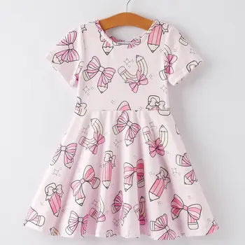Get ready for the school year with our Back to School Dress! With a cute bow and trendy pencil print, your little girl will make a stylish statement.Perfect for any occasion!